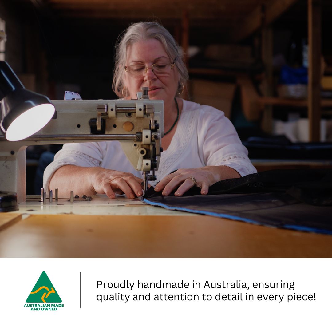 - Made by seamstresses in Byron Bay, Australia, with recycled materials from fishing nets and single use plastics