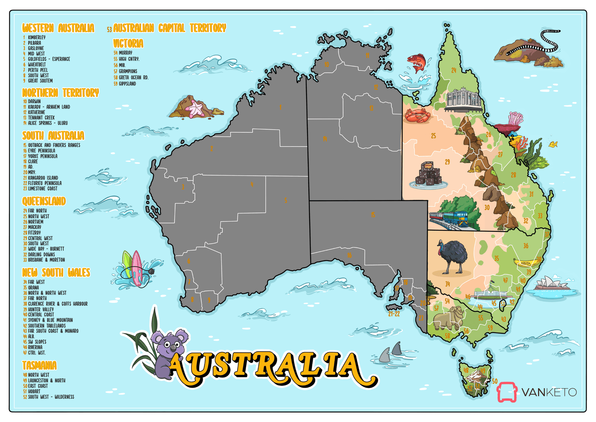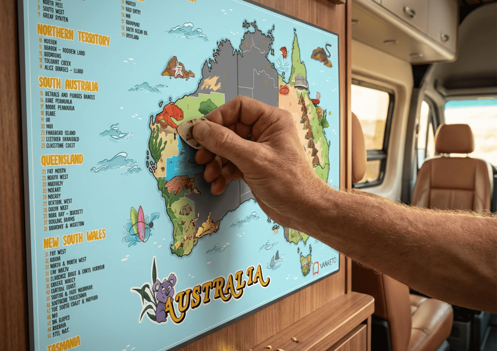 It’s perfect for vanlifers, road trippers, campers, and anyone slowly ticking off their Aussie bucket list. Keep it at home, in the office, or gift it to someone who’s always planning the next getaway.